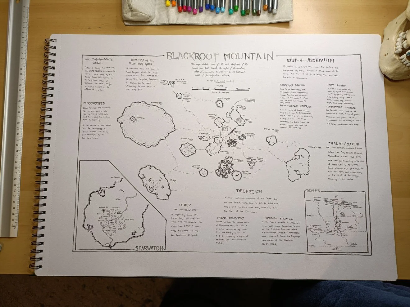 Commission your Game Master Map as an A2 map in hand-drawn style. Using a combination of media, Ryan of the Red Quills will help you to create the definitive outline of your fantasy world from scratch or from a sketch so that you can display it or play it with your friends. Just point Ryan in the direction that you want, and he will make sure to return with something beautiful and useful.